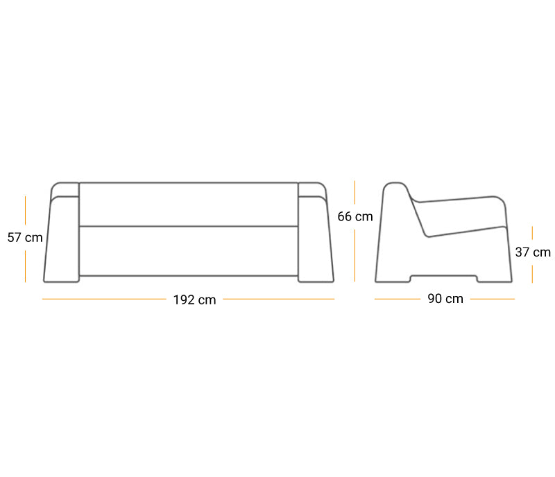 Ancho: 192 cm Profundidad: 90 cm Altura: 66 cm