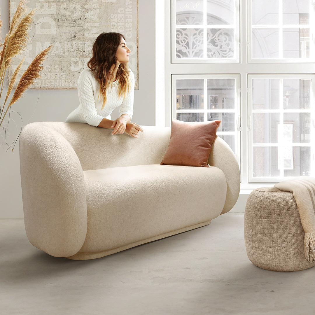 Este sofá se caracteriza por sus curvas glamorosas y diseño atemporal, ofreciendo una comodidad envolvente gracias a su asiento mullido. Sus líneas puras y redondeadas, aportan confort visual, despertando curiosidad al tacto y un irresistible deseo de sentarse. Es una pieza versátil de aspecto chic que se adapta perfectamente en interiores residenciales o áreas comunes en espacios de oficina.