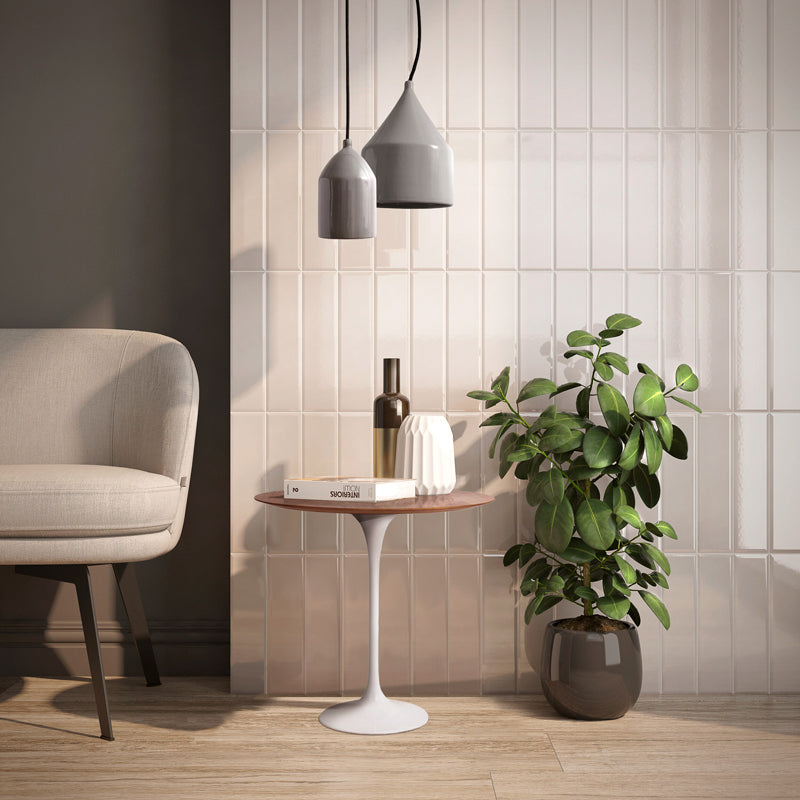 Tapa en madera Petiribí lustre natural de 19mm de diámetro con canto danés a 45°. Base de aluminio fundido pintado blanco.