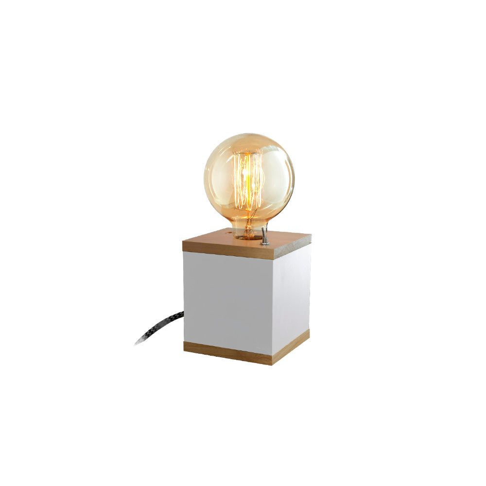 Madera de guatambú laqueada. Aluminio pintado blanco o aluminio anodizado negro. Cable entelado. Incluye entrada USB para cargar todos los dispositivos desde ahí. Incluye lámpara de filamento, modelo según stock.
