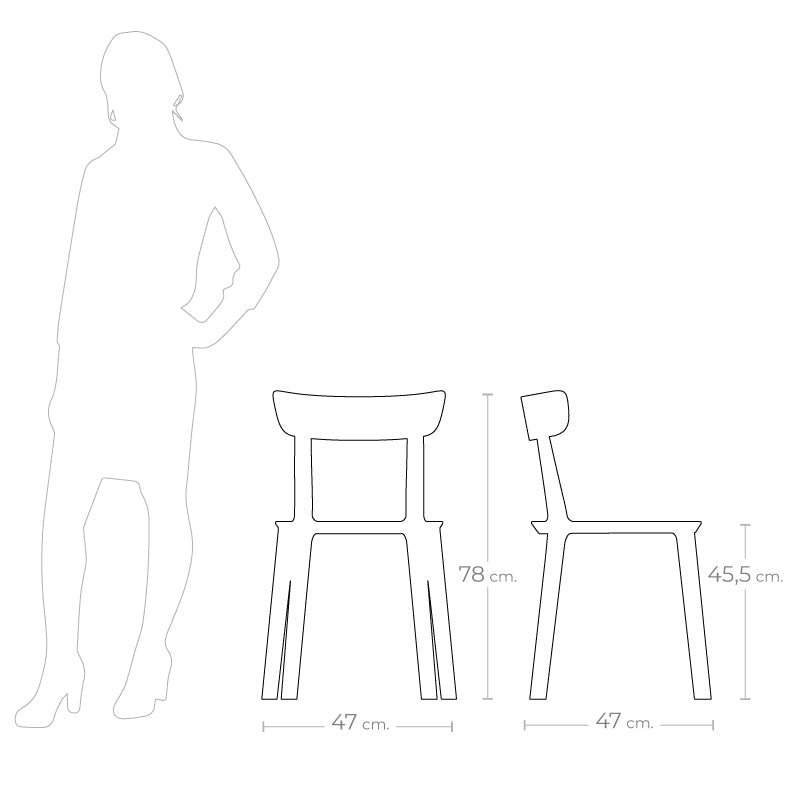 Ancho 47cm. / Alto 78 cm. / Profundidad 47 cm. / Altura asiento 45,5 cm.